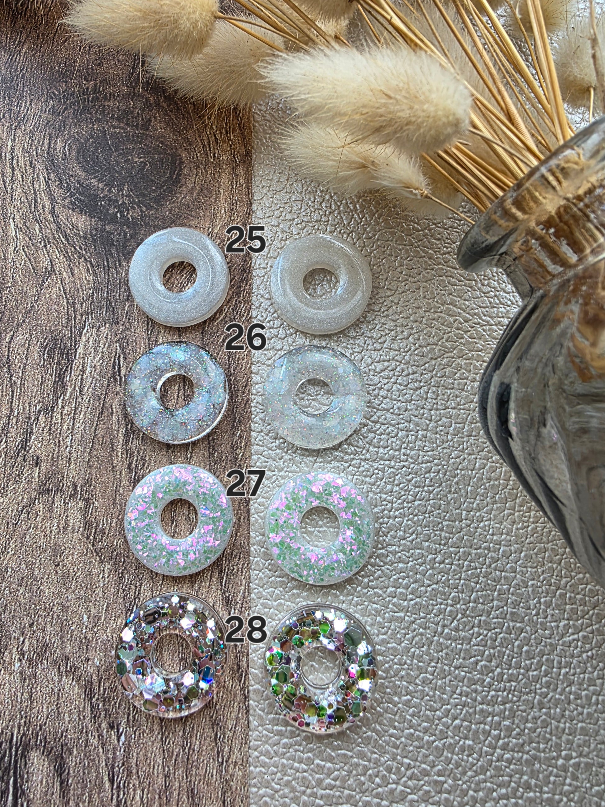• Les pampilles mesurent 2 centimètres de diamètre. Elles sont réalisées à partir de résine époxy 💎