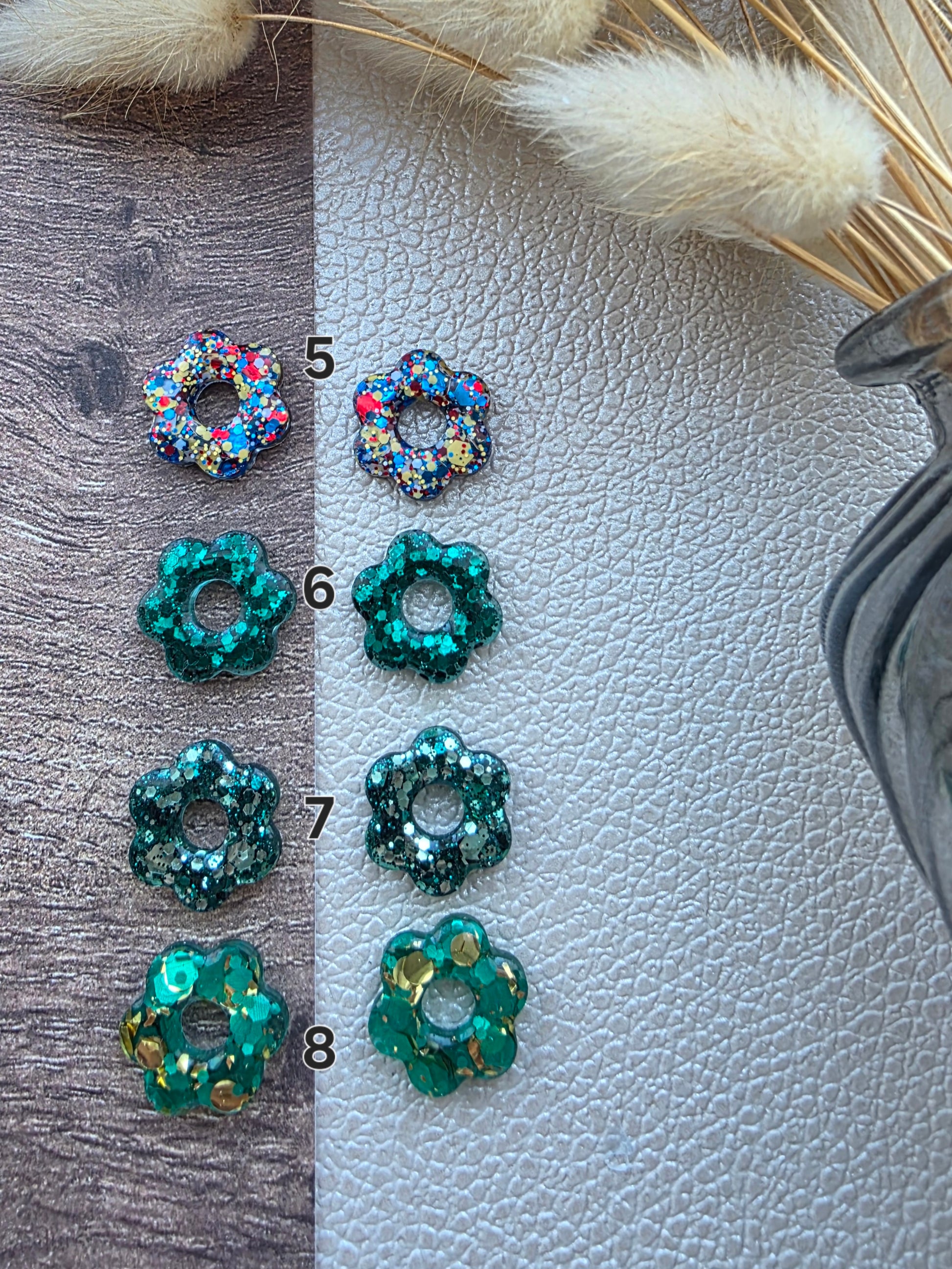 • Les pampilles mesurent 1,6 centimètre de diamètre. Elles sont réalisées à partir de résine époxy et recouvertes de résine UV 💎
