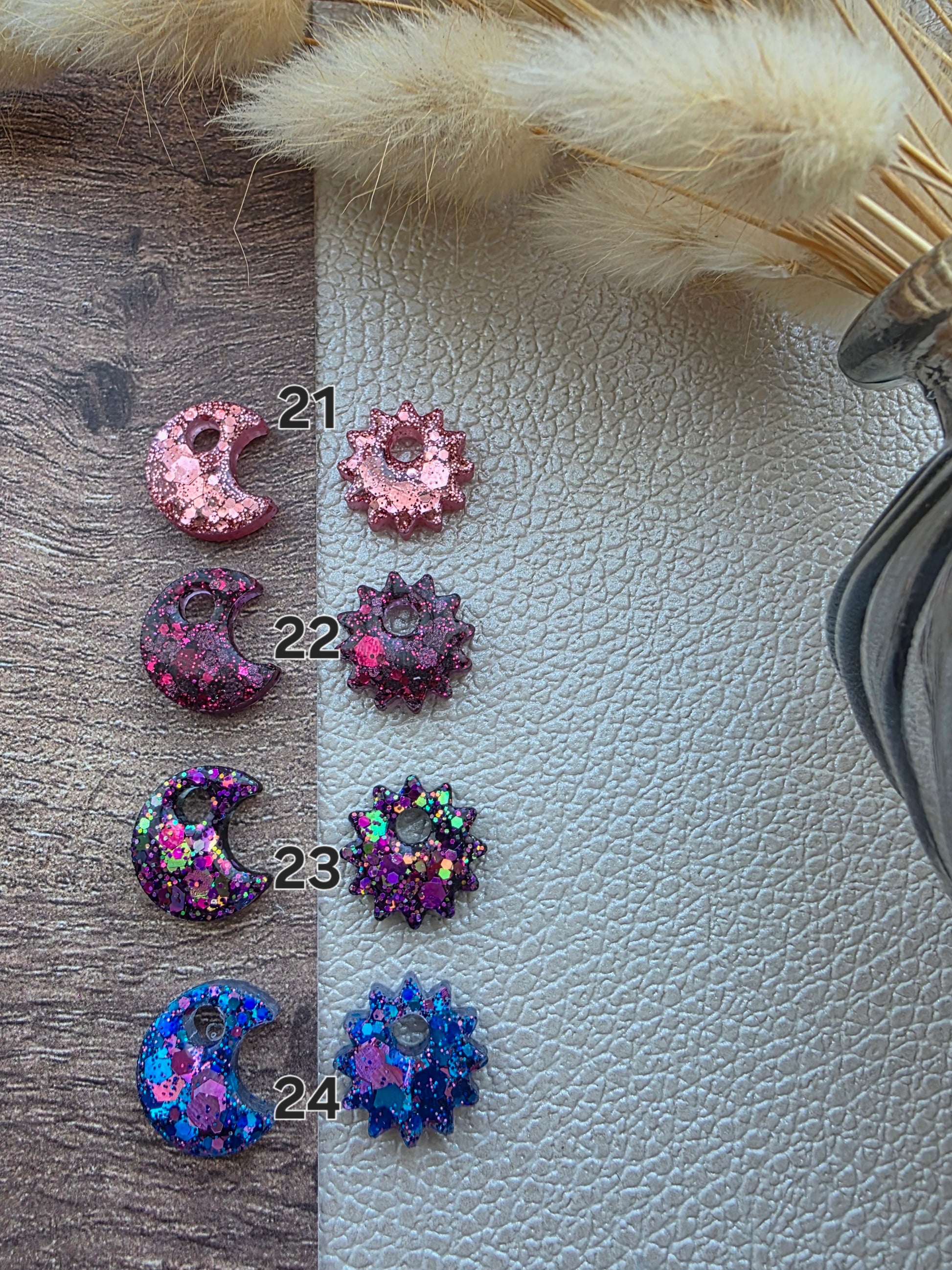 • Les pampilles mesurent 1,6 centimètre de diamètre. Elles sont réalisées à partir de résine époxy et recouvertes de résine UV 💎
